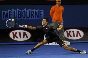 So Djokovic wins, 67 76 63 62, and is the first player in the Open era, to win three consecutive Australian Opens. This is also his 6th Slam (4 Aussie Opens, 1 US Open, 1 Wimbledon). He’s getting to the point where he’ll at least be mentioned in the second tier of great players (Connors, McEnroe, Lendl, Agassi, etc).